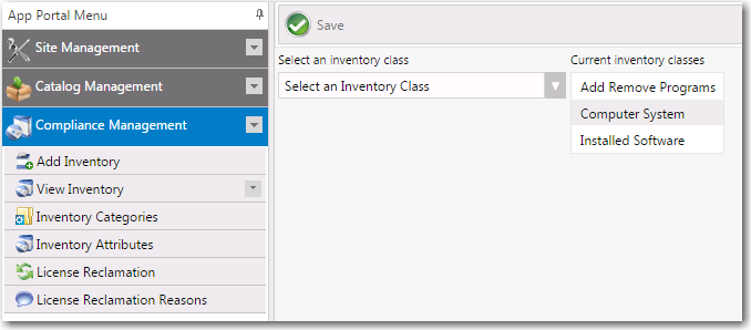 By default, App Portal ships with three standard inventory classes, which are those that are typically expected to be seen and inventoried in a System Center Configuration Manager environment: