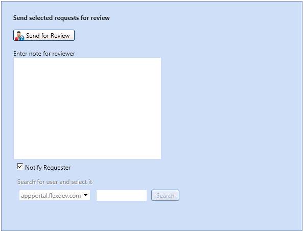 - The requester or the selected user will then receive an email with the text of the note, and a link to review the submitted request.
